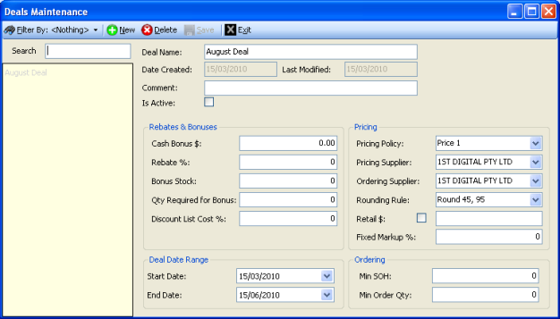 | Pricing Policy | The Pricing rule being used by this Deal. |