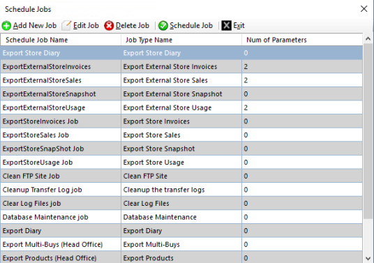 The Schedule Jobs dialogue is displayed with the default list of jobs.