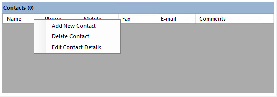 5. Enter the Name, Phone, Mobile, Fax, E-mail and Comments information.