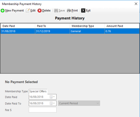 4. Enter the Membership Fee $, Date Paid and Date Paid to.