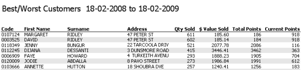 This option displays the best or worst Customers based on the number of items sold during the selected date range. |