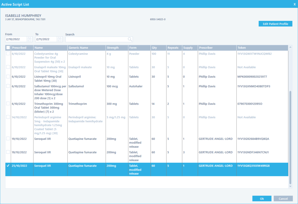 The presentation of the patient’s active script list may vary according to the prescribing system used by the prescriber.