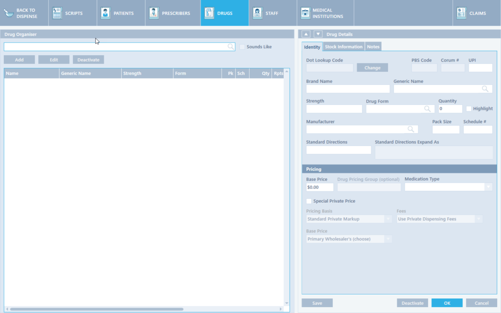 These actions can also be performed from the Dispensing screen. However, if you are focusing on drug maintenance rather than dispensing, it is more efficient to use the Organiser.
