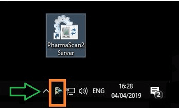Have a look at the bottom left corner of the screen on your LOTS Master. If you don’t see this icon, you will need to re-run the program by double-clicking the shortcut on the Desktop (PharmaScan2 Server in the picture below).