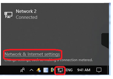 on the bottom right corner of the screen, and then click on Network & Internet settings.