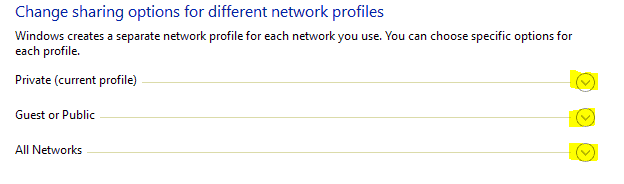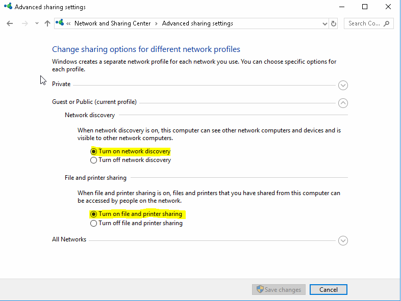 5. Repeat the process for all three profiles i.e Private, Guest or Public, All networks