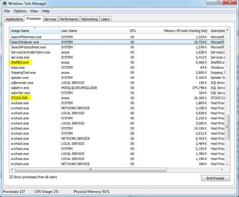 Sometimes an application can get stuck in the Windows background and needs to be restarted manually. If the Stock Card module is not opening or stops printing shelf labels, it can be closed from the Windows Task Manager in order to open again. Right-click on the Task bar > Start Task manager . Right-click and close the following applications from task manager