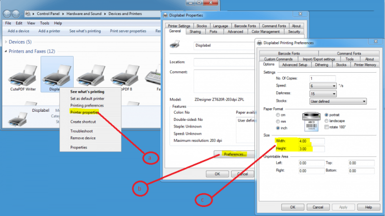 A . Windows Start Menu > Control Panel > Devices and Printers > right click on the respective printer > Properties