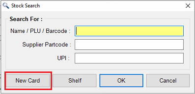 If you are creating a single card, you can do this from the Stock card module by selecting “New Card “ from that Search pop-up.