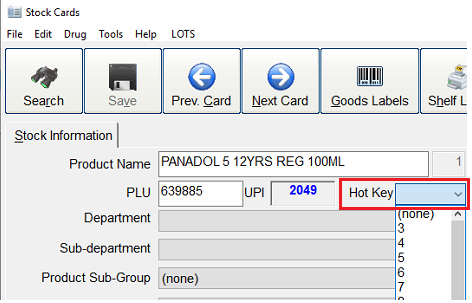 In the stockcard, under the name of the product, there is a drop-down option for all the remaining available hot keys. For example, Ear Piercing can be allocated the hot key of ‘6’. Once set, in the Sales module New Sale view, you type ‘6’ in a product line and this item will come up.