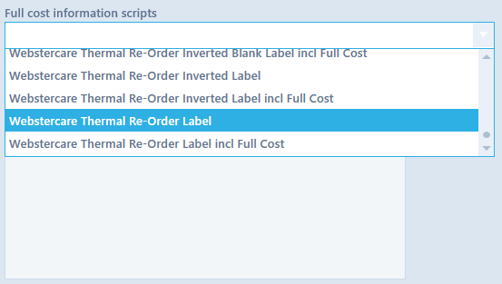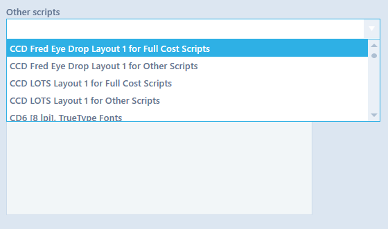 This drop down is used to choose the type of labels that are required to printed for other types of scripts, when dispensing to a medical institution.