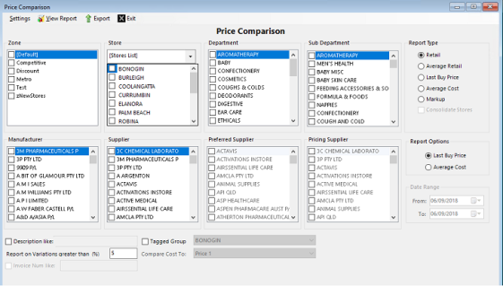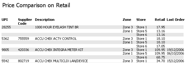 The Price Comparison Report lets you compare the price of Products between various Stores. Different Stores might have different retail price for the same product, comparison helps to find the variation in price.