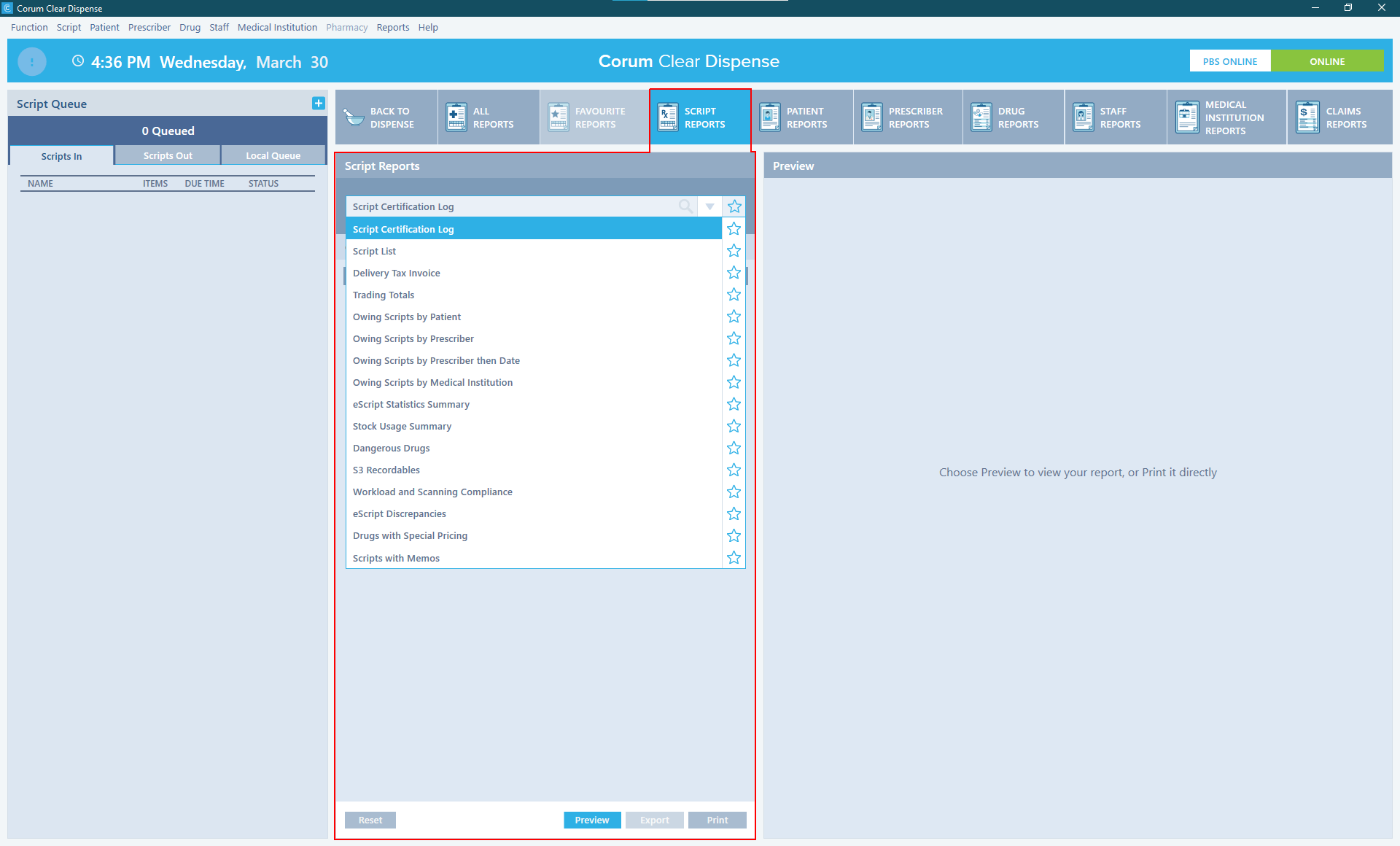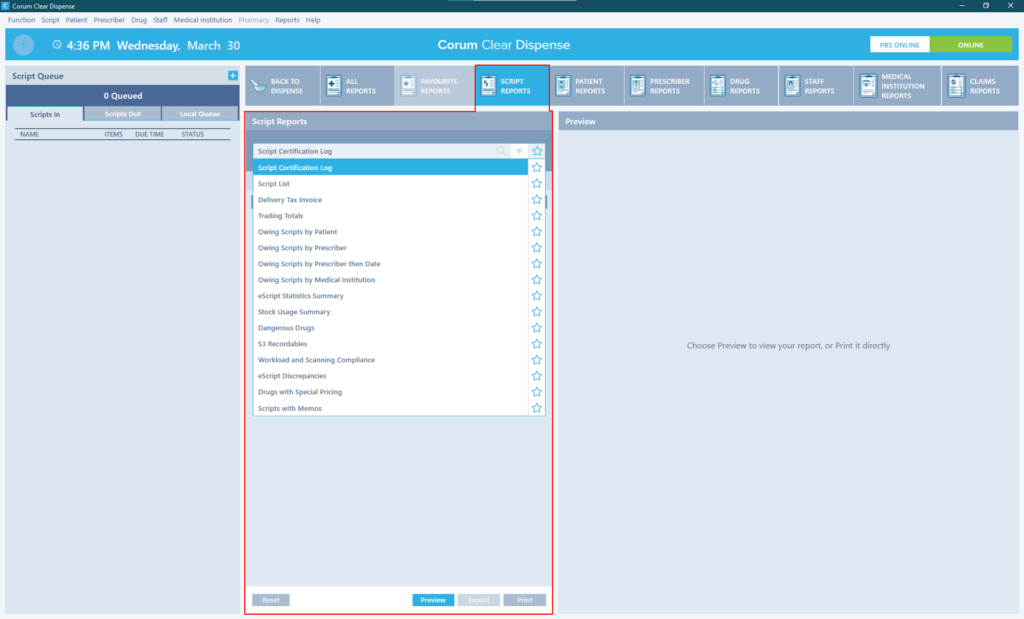 All reports related to scripts can generated using the Script menu option or by selecting the Script Reports tab. The reports that you can generate are: