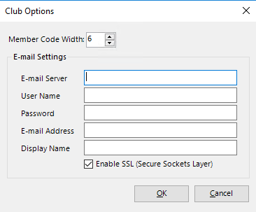 The Options menu enables you to add email settings so that emails can be sent to the customers.